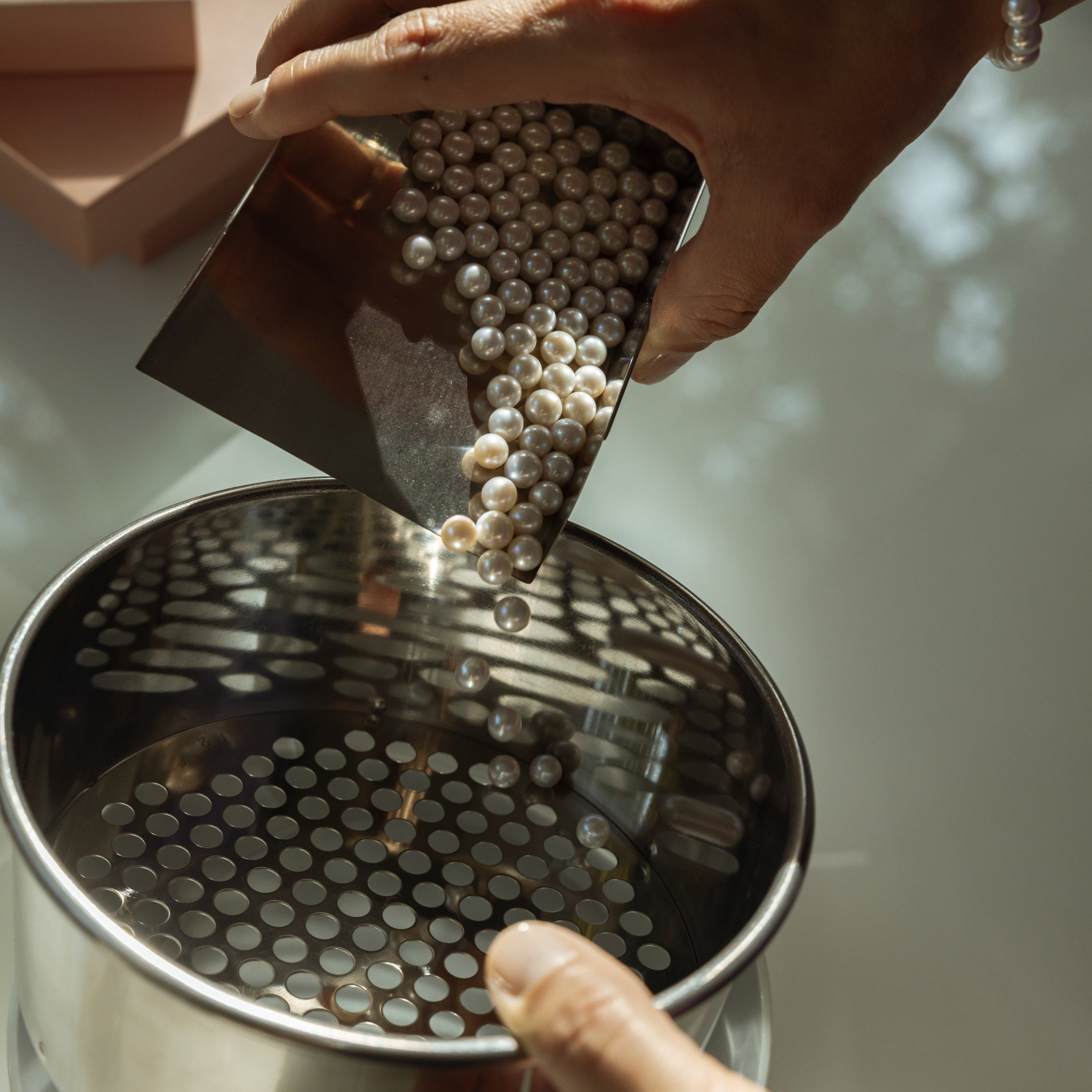 Wir verwenden auschließlich sorgfältig ausgewählte Perlen höchster Qualität. Jede Perle wird nach Kritierien wie Oberfläche, Lüster, Farbe, Form und Größe geprüft.